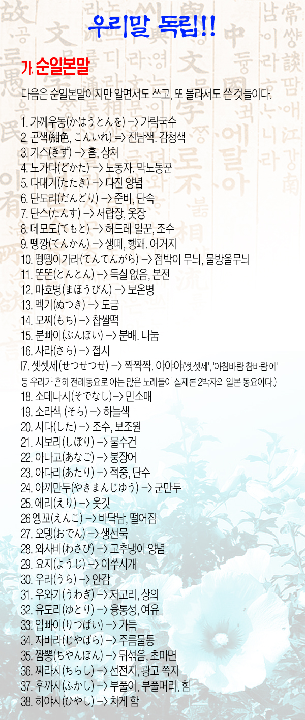 우리말 속에 뒤섞인 일본말들 - 김영조의 민족문화생활화 12