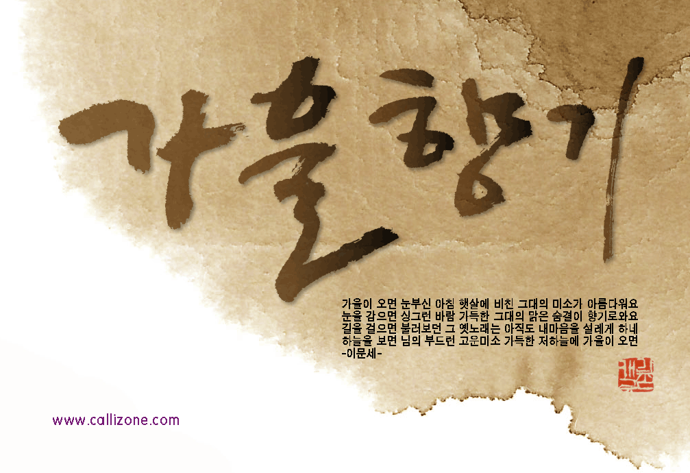 [직접쓴 캘리} 가을향기 callizone 일반 1 9381 2007.10.02 14:07 http://www.callizone.com/home/index.php + 568 가을이 익어가고 있습니다. 가을을 음미하면서 한번 만들어 보았습니다. 회원님들 감기조심 하세요^^