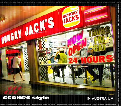 HUNGRY JACK'S 마크가 버거킹이랑 비슷하네요... 노란 햄버거에 빨간글씨... 내장도 체크로 검정이랑 흰타일도 비슷하고.