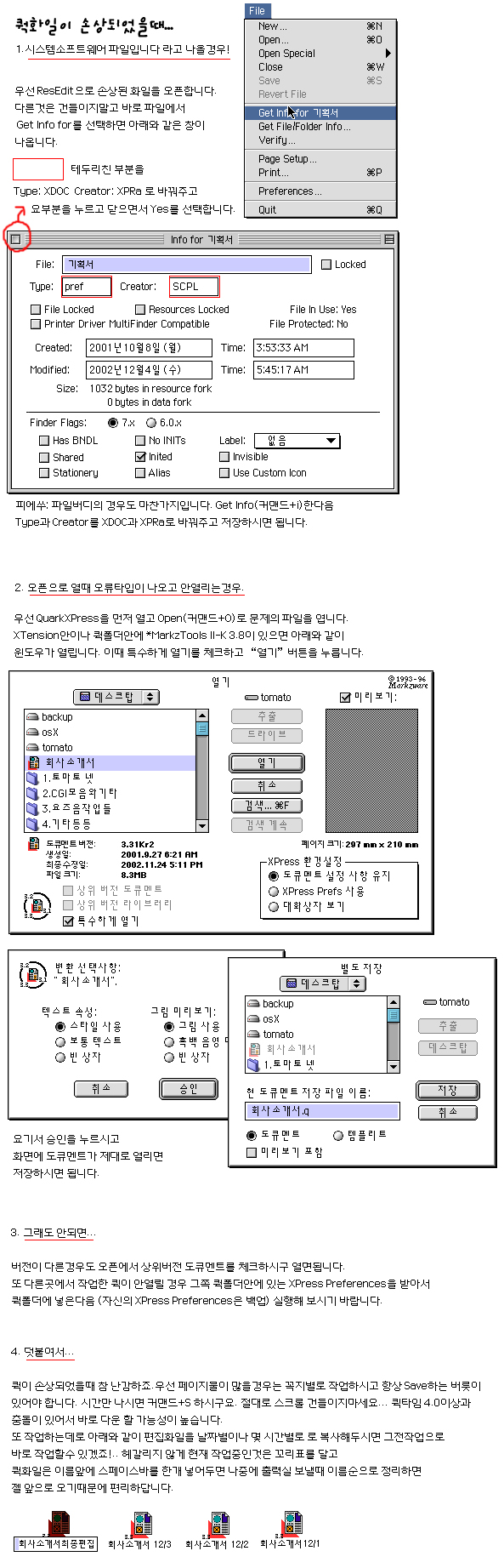 저도 이런일 몇번 있었는데효~ 이렇게 해서도 안열리더라구요~ 그 담부턴 아예~ 자동백업설정해놓고 작업 합니다. 그리곤 가끔 2개정도 남겨놓고 지워버리죠~